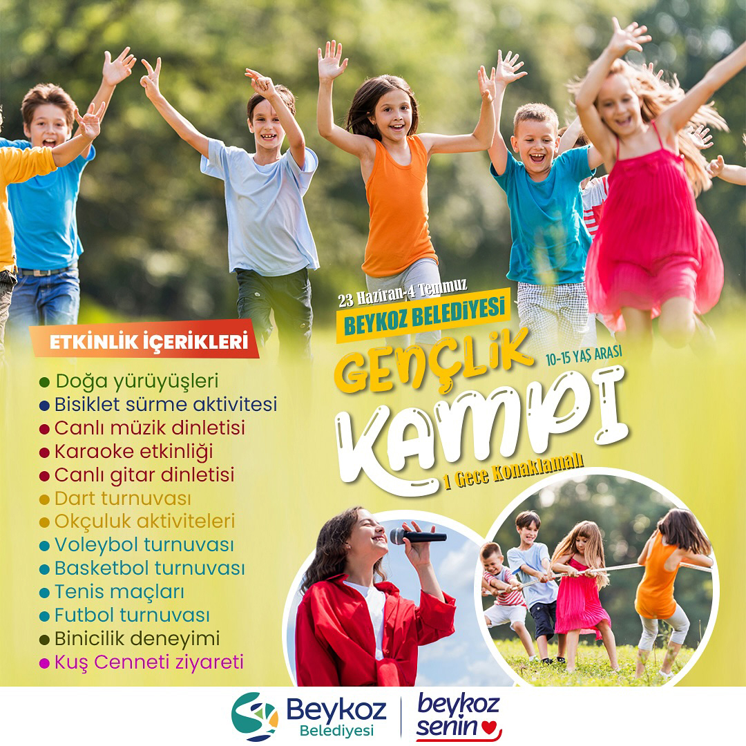 Beykoz Belediyesi, çocukların fiziksel, zihinsel ve sosyal gelişimine katkı sağlayacak yeni bir yaz etkinliğiyle karşınızda: “Beykoz Gençlik Kampı”. 23 Haziran – 4 Temmuz tarihleri arasında Beykoz Spor Ormanı’nda düzenlenecek olan kampta, 10-15 yaş arasındaki Beykozlular unutulmaz bir yaz tatili deneyimi yaşayacak.