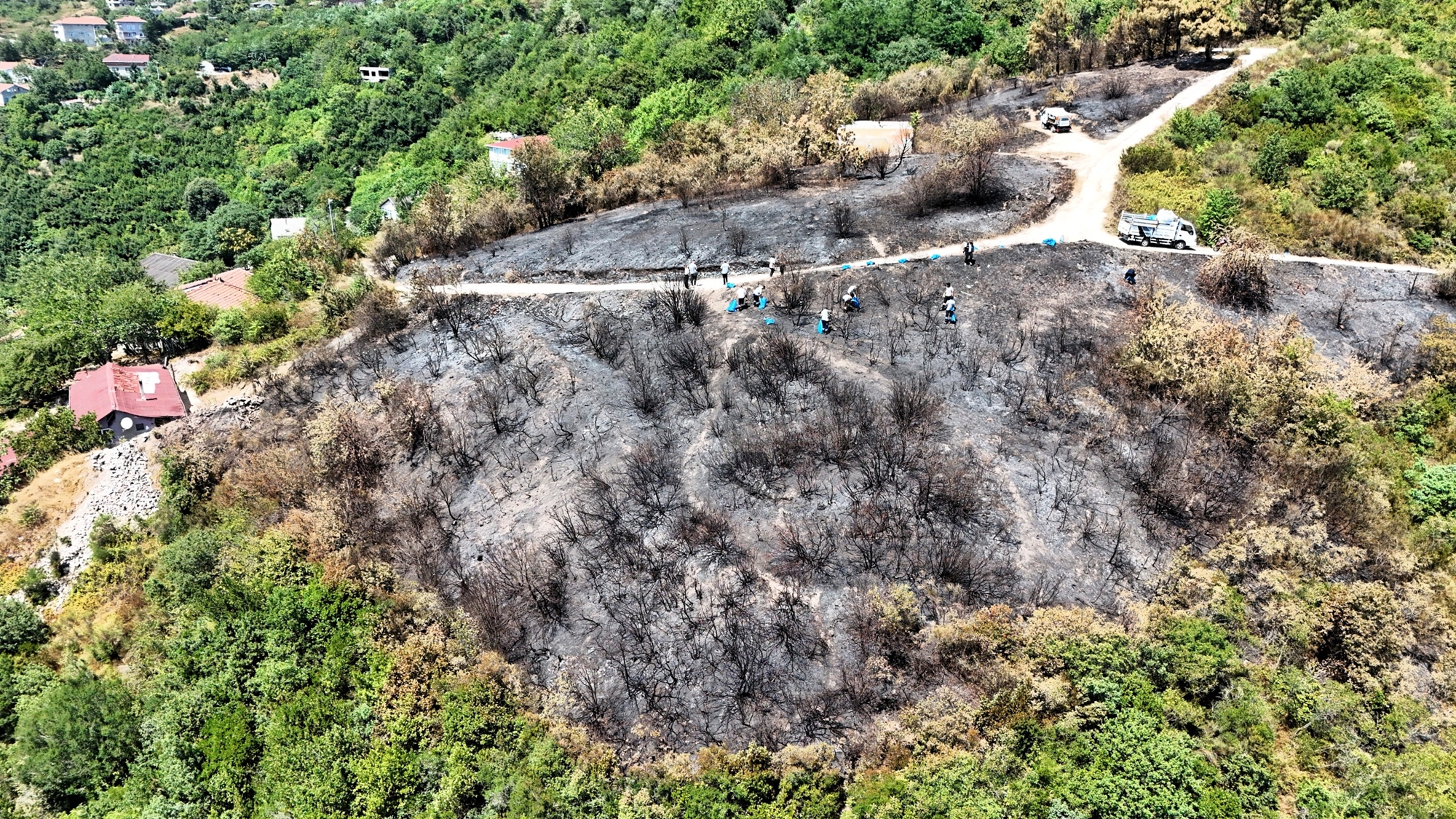 Beykoz Belediyesi, Gümüşsuyu Mahallesi Karlıtepe mevkiinde çıkan orman yangınının ardından bölgede geniş kapsamlı temizlik çalışması gerçekleştirdi.