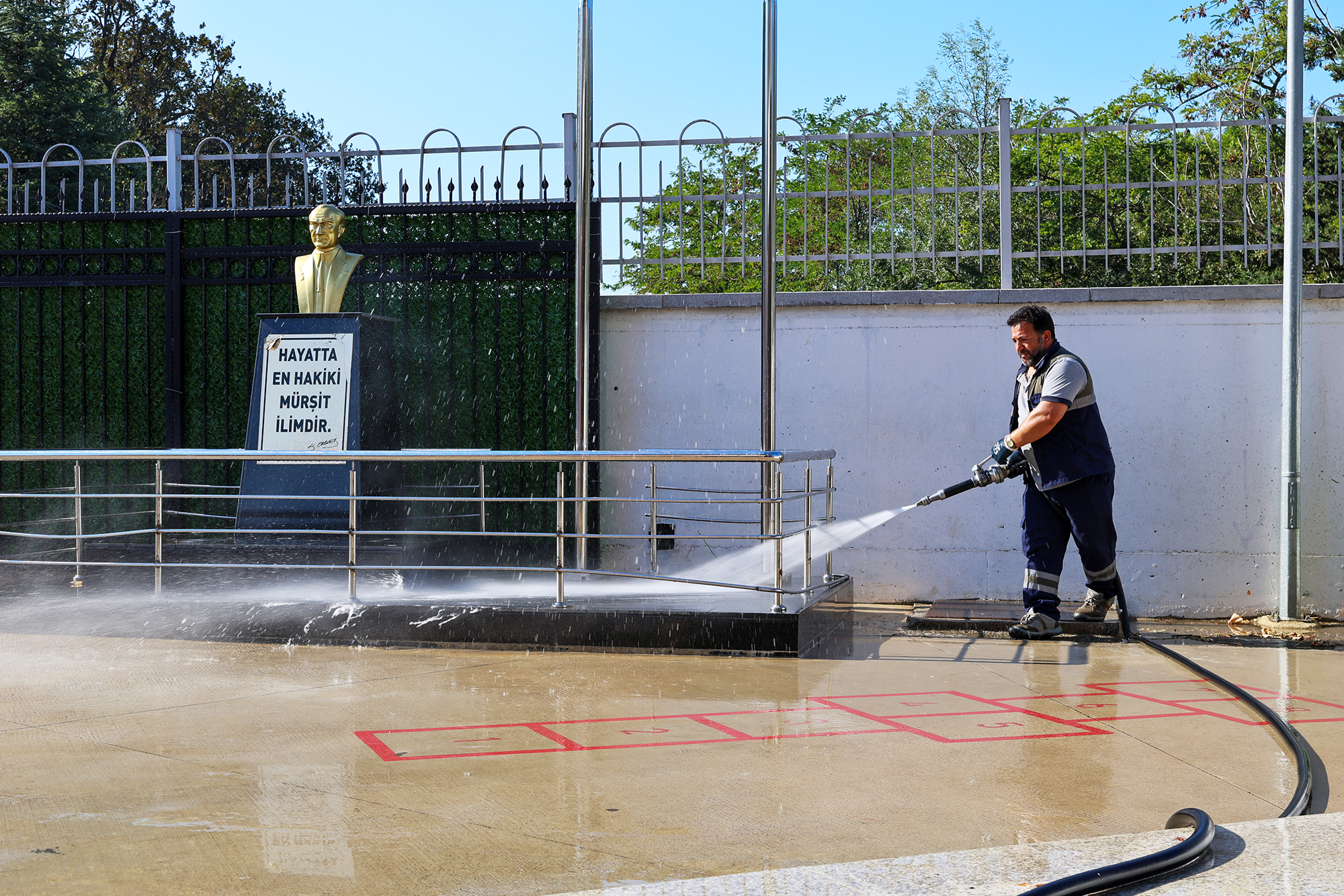 Okulların yalnızca iç mekânları değil, bahçeleri de yenilendi. Park ve Bahçeler Müdürlüğü ekipleri tarafından yabani ot ve çalı temizliği yapıldı, ağaç dalları budandı ve düzenlemelerle öğrencilerin güvenle vakit geçirebilecekleri sağlıklı ortamlar oluşturuldu.