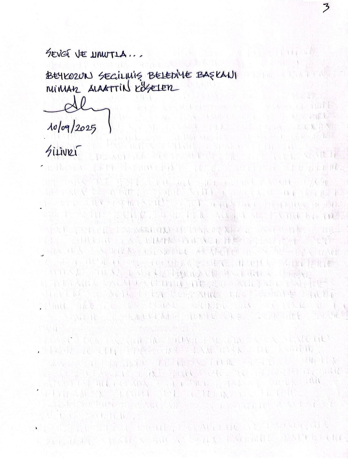Köseler, mektubunun sonunda Beykozlulara teşekkür ederek şu ifadelere yer verdi: