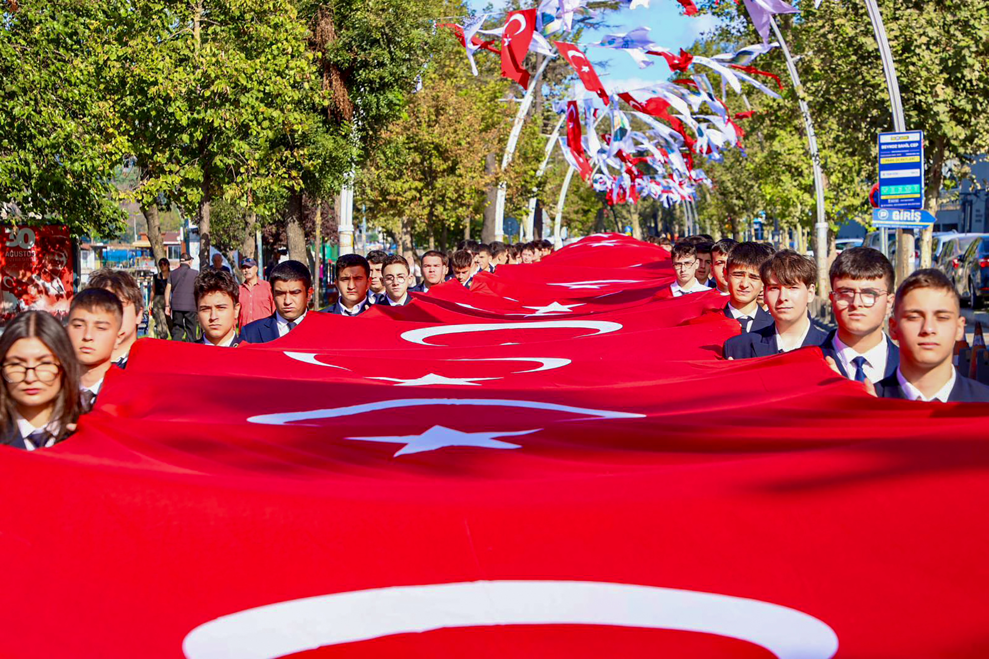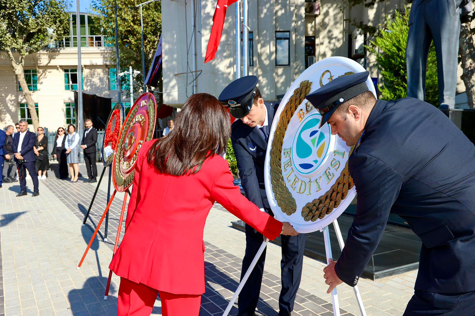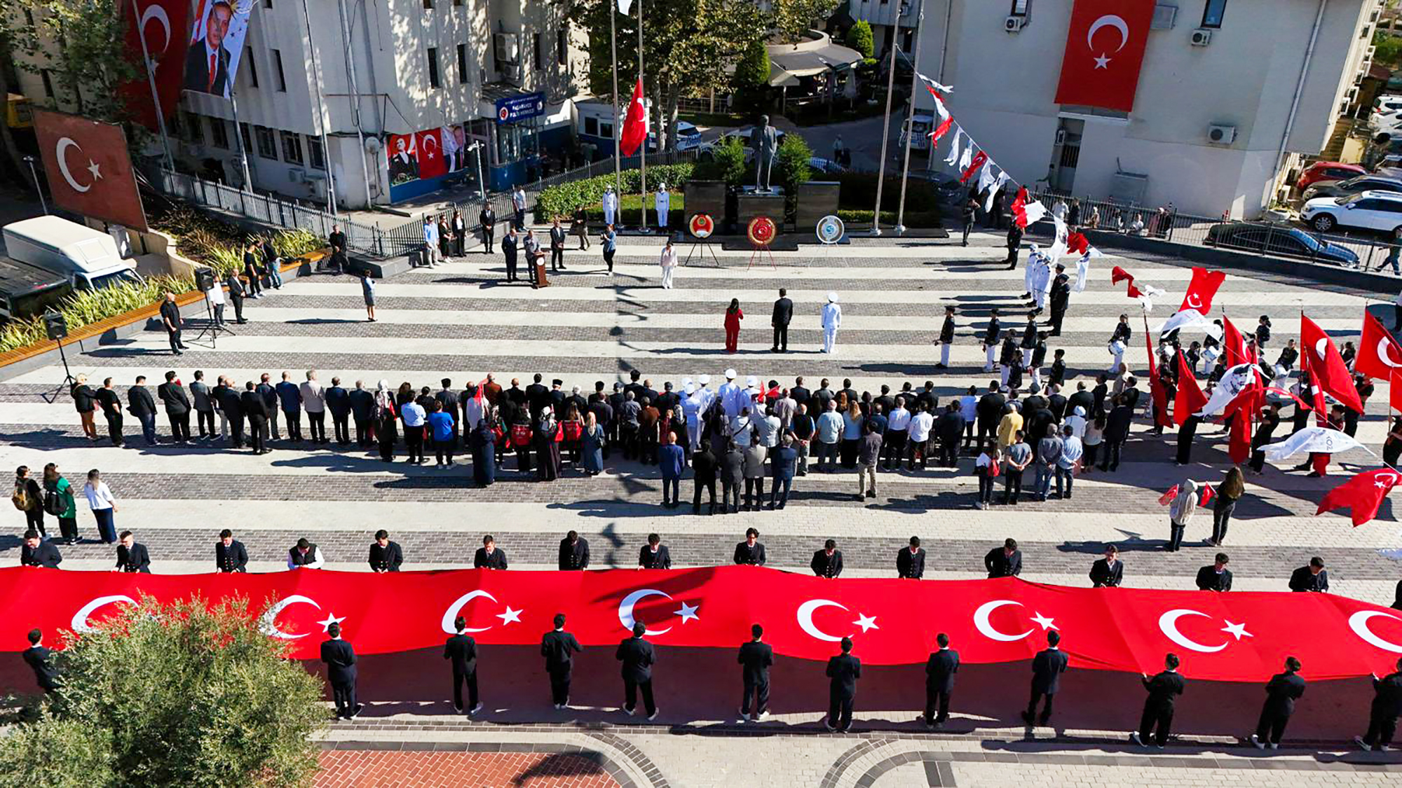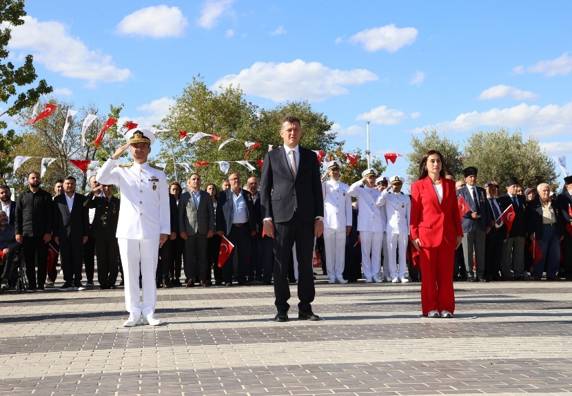 Meydanda düzenlenen törende Kaymakam Ürkmezer, Tuğamiral Erken ve Başkan Vekili Gürzel, Atatürk Anıtı’na çelenk sundu. Saygı duruşu ve İstiklal Marşı’nın okunmasının ardından Kıbrıs Gazisi Ferit Baltaş günün anlamına dair konuşma yaptı. Öğrenci Mustafa Mete Sarıosmanoğlu ise Mehmet Akif Ersoy’un “Cenk Marşı” şiirini seslendirdi.