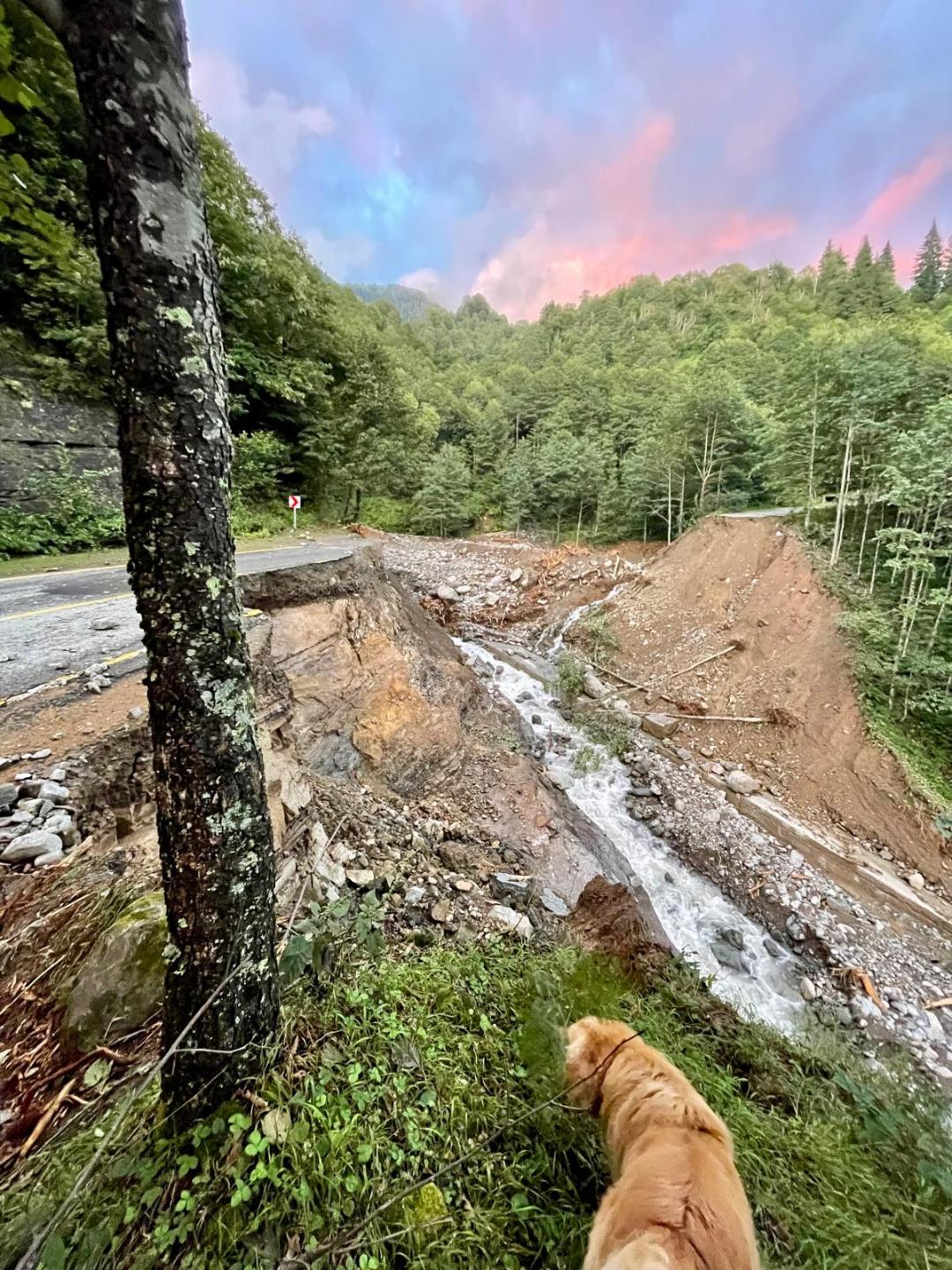 Tek yönlü asfalt yolun hemen altından geçen derenin taşması sonucu yıktığı menfez ve köprüler atılmış. Bu sebeple, yolun göçtüğü ve köprülerin çöktüğü, yolun iki yakasının ayrıldığını, ulaşımın tamamen kesildiğini anlatıyor ve fotoğraflarla gösteriyor. Üzüntüsünü de şu cümlelerle bildiriyor;