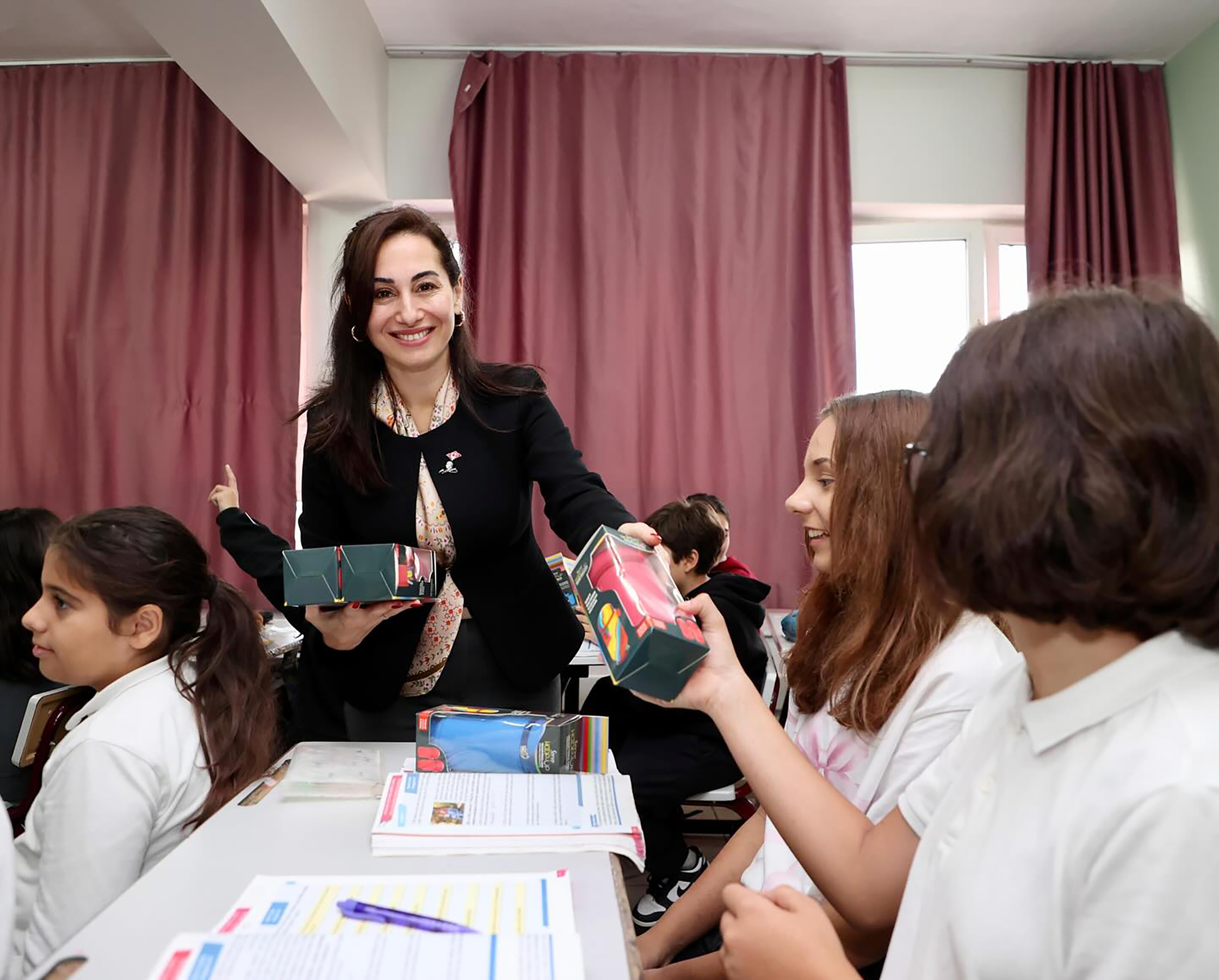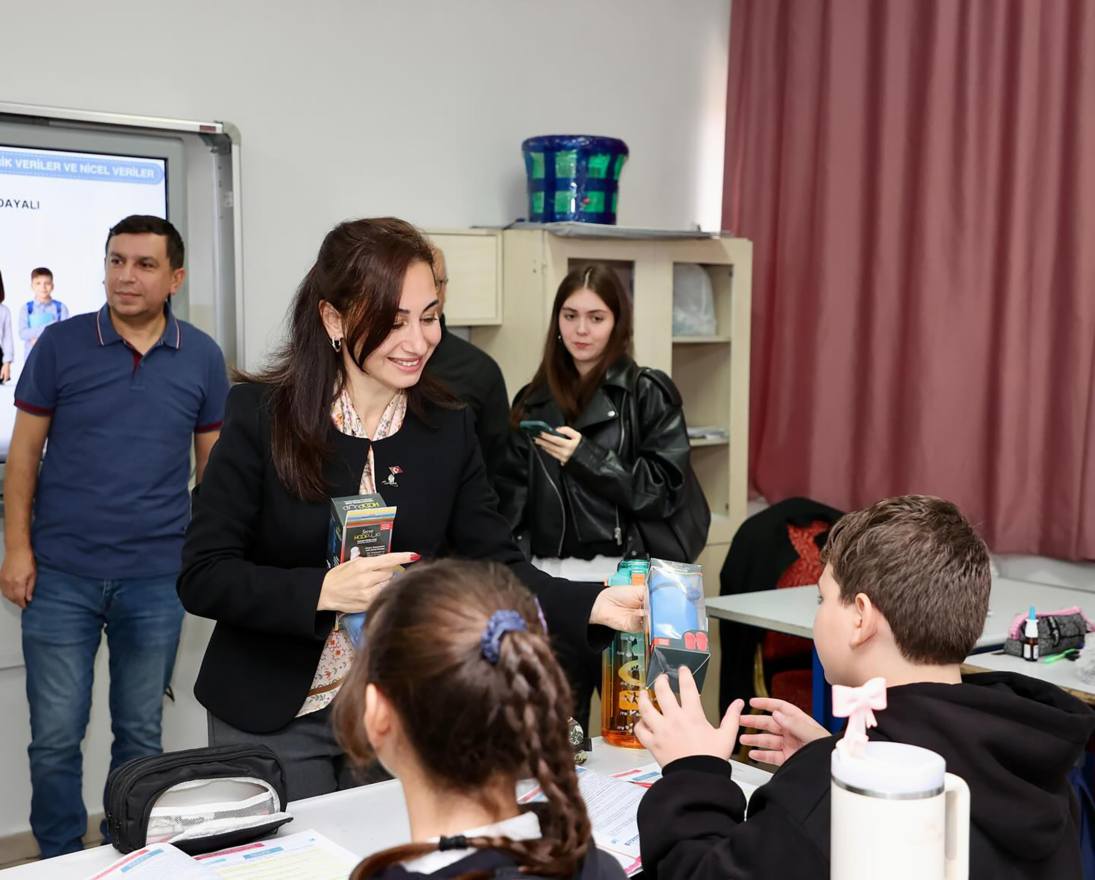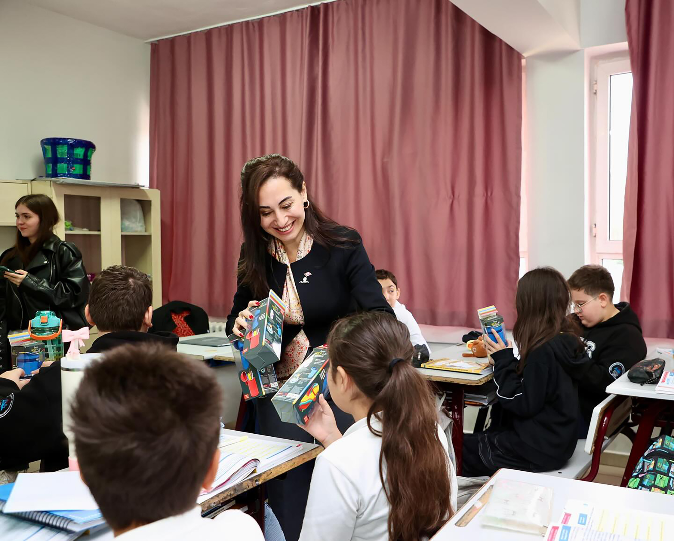 Okul bahçesinin ardından Kerem Ali’yi davet üzerine sınıfında arkadaşları ile birlikte ziyaret eden Başkan Vekili Özlem Vural Gürzel, “Bugün sizlerin attığı her adım yarının Beykoz’unu, ülkemizin geleceğini şekillendirecek. Çalışkan, azimli ve hedefleri olan gençler olarak yolunuza devam edin. Sizlere olan inancımız tamdır.” diyerek öğrencilere nasihatlerde bulundu.Kalem Kutusu Hediyesi