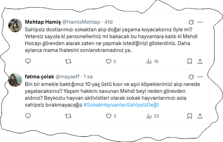 Sosyal medyada yapılan paylaşımlarda, mama ihalesinin henüz tamamlanmaması ve veteriner hizmetlerinde aksama yaşanabileceği yönünde iddialar yer aldı. Bazı hesaplar, Mehdi Fidan’ın yeniden göreve getirilmesi çağrısında bulundu.