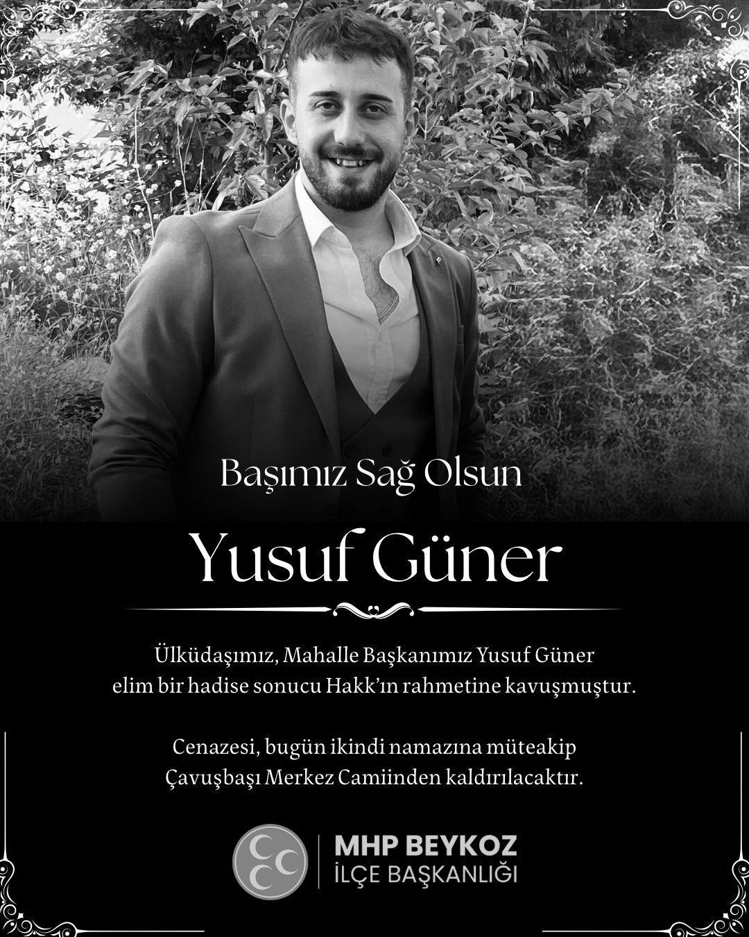 MHP Beykoz İlçe Başkanı Emre Çömlekçi, 7 Aralık’ta yaşanan elim olayın ardından hayatını kaybeden Acarlar Mahalle Başkanı Yusuf Emre Güner için bir taziye mesajı yayımladı. Genç yaşta vefat eden Güner’in dava adamı, çalışkan ve çevresi tarafından sevilen bir ülküdaş olduğunu belirten Çömlekçi, “Gayretlerine şahidiz” ifadelerini kullandı.