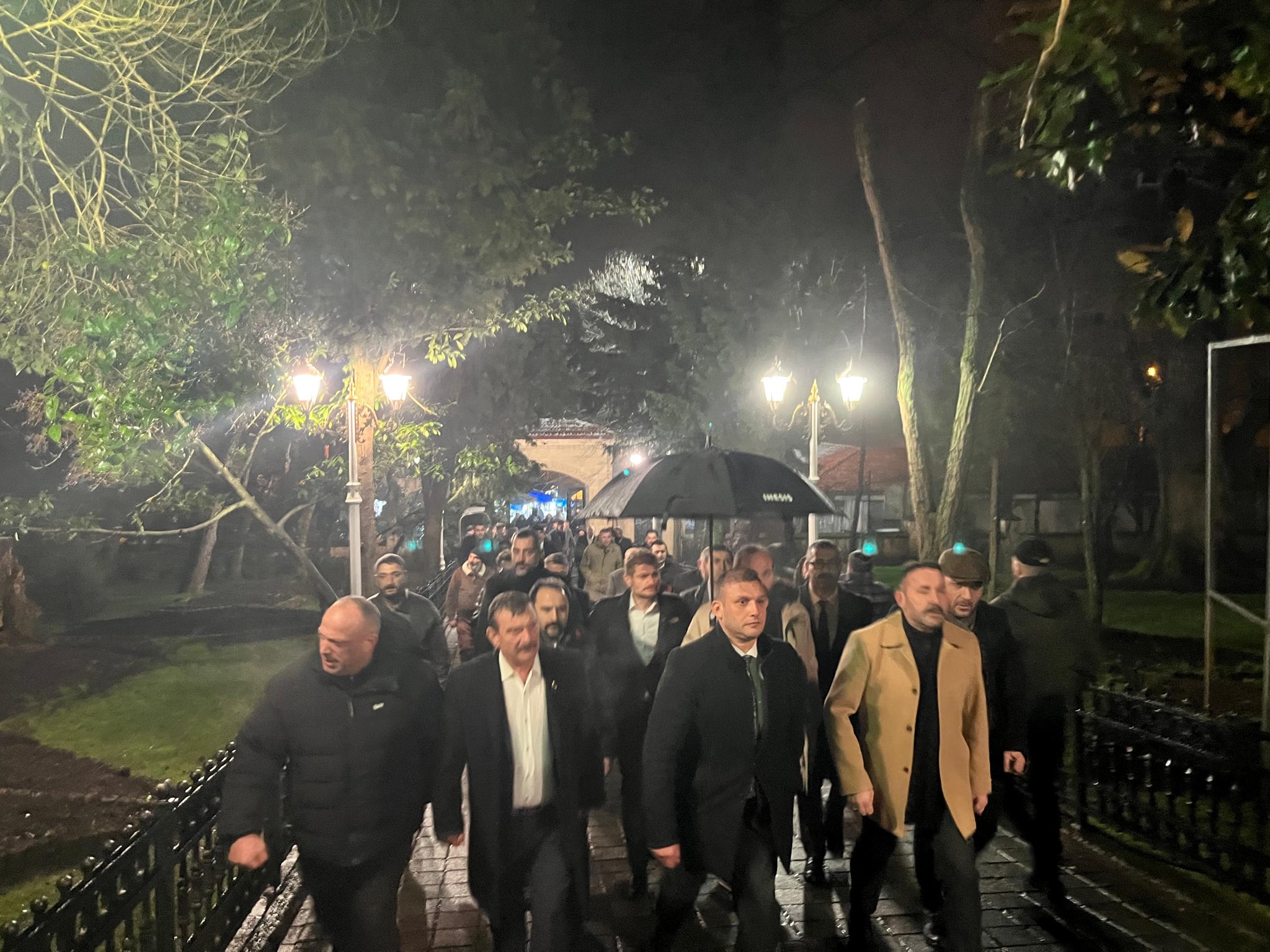 Bugün Ramazan ayına girişimizi buruk bir şekilde kutluyoruz, seviniyoruz. Çünkü Beykoz’umuzun manevi bekçisi olan Hazreti Yuşa’nın kabri Beykoz’umuzun en çok ziyaret edilen, İstanbul’un Hazreti Eyüp Sultan’dan sonra en çok ziyaret edilen ikinci mekanı olan Hazreti Yuşa kabrindeyiz. Buruk bir Ramazan’a giriş yapmış oluyoruz. Bugün buraya Beykoz’umuzun, Beykozlu komşularımızın yüreğinin sesi olarak geldik. Bugün burada üzücü bir olayla karşılaştık. Evet, Hazreti Yuşa’nın girişinde otopark ücreti, tuvaletlerinde ücret alındığını öğrendik ve bu bizi ziyadesiyle üzdü. Beykozlu komşularımızı da üzdü. Biz Beykozlular olarak bu şekilde anılmak istemiyoruz. Beykoz’umuzun manevi bekçisi Hazreti Yuşa Aleyhisselam’ın kabrine girişte otopark ücreti alınmasına hep beraber Beykozlu komşularımızla beraber karşıyız. Neden? Çünkü burası manevi atmosferin en yoğun yaşandığı bir yer. Peygamber, peygamberimiz olan Hazreti Peygamber Yuşa’nın kabrinde bugün tuvaletlerimizde ücretler alınıyor, otoparkında ücretten alınıyor. Bundan önce alınmıyordu. Şu anda alınmasının sebebi nedir? Bunu anlamıyoruz. Buraya bir yemekhane…”